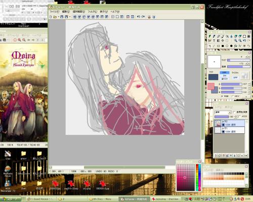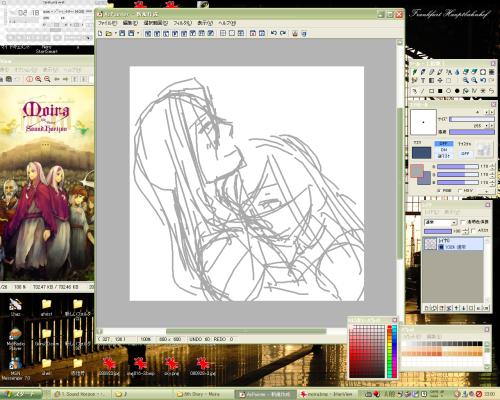アタリが酷すぎるので、イケメンになるように念じながら左右反転を駆使して下書きを描きます。