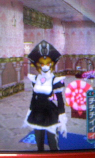 左のメイド服は、スカートがあまりにも短いのでおぱんつが見えるかとカメラをぐるぐるしたらなんと! 見えました。